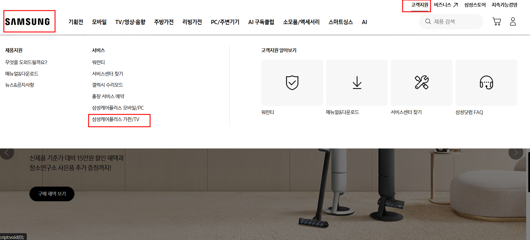 삼성전자>고객지원>삼성케어플러스 가전/TV