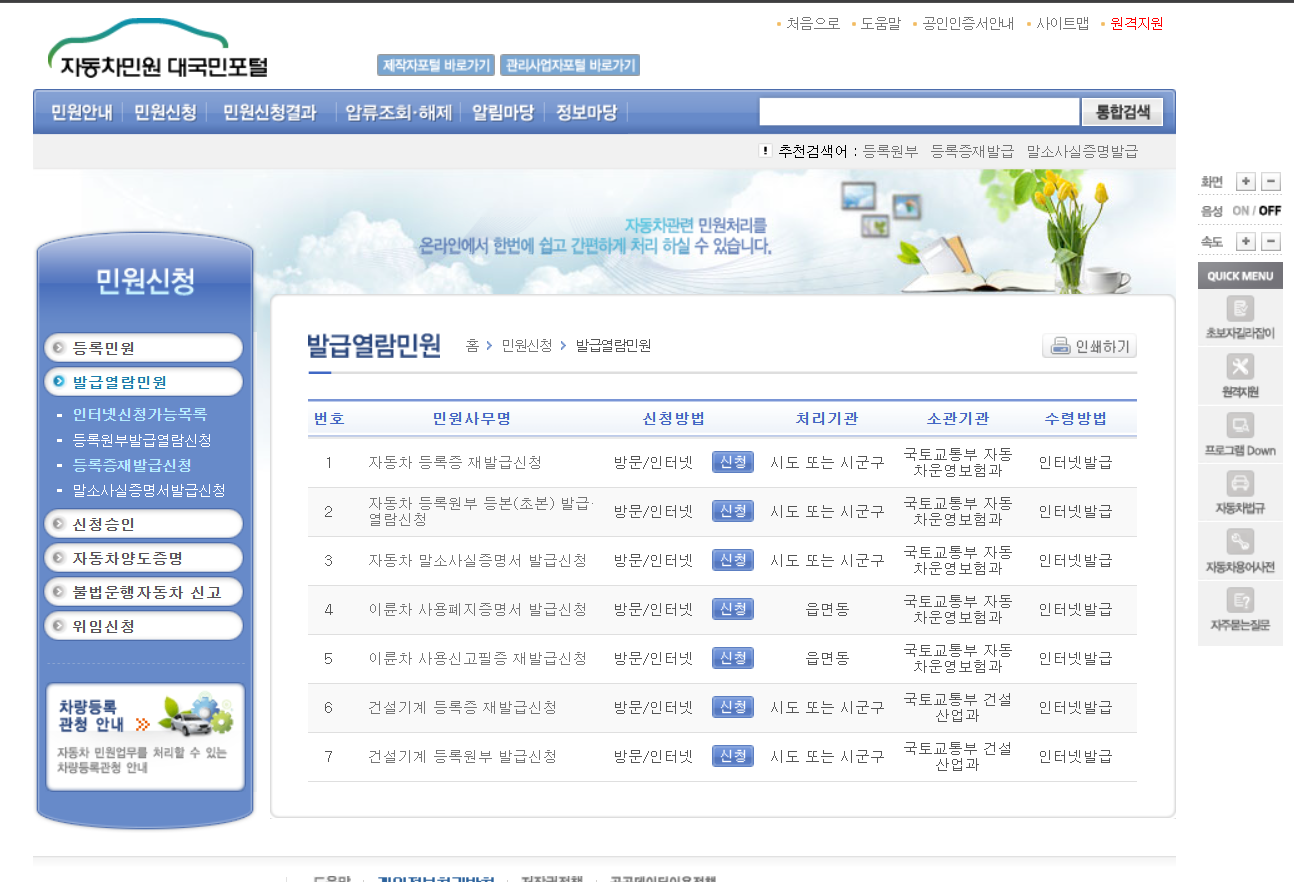 - 자동차민원 대국민포털 접속 > 민원신청
