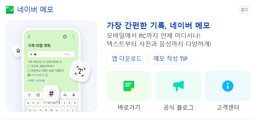 • 장점 : 네이버 메모의 경우, 아이폰과 갤럭시에서 활용이 가능하며, 네이버 계정을 활용할 수 있다는 장점이 있습니다. 더불어 PC와 모바일에서 실시간으로 메모가 연동이 되어서 사용이 가능하며, 네이버이기 때문에 한국 사용자들에게 익숙하고 직관적인 인터페이스를 제공하고 있습니다.