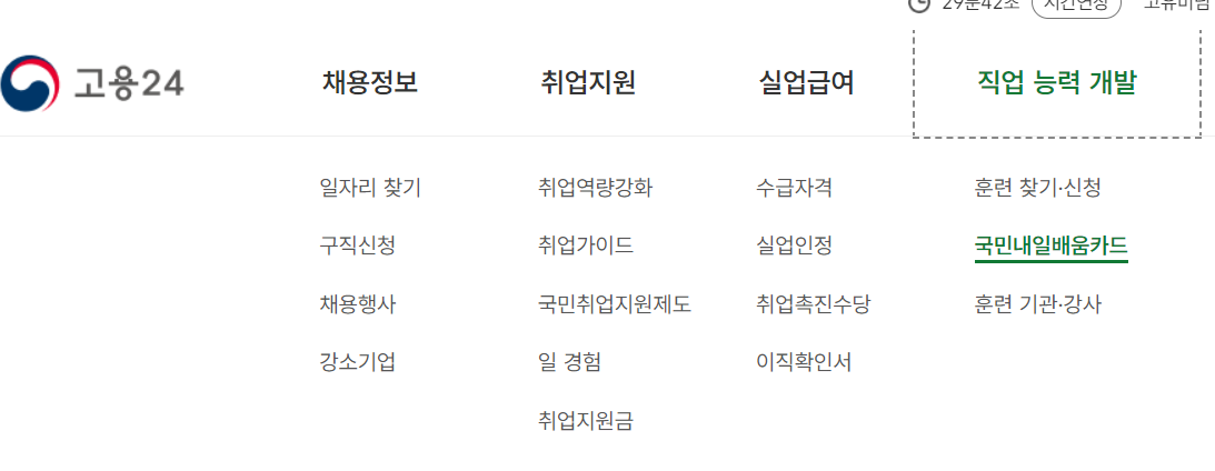 - https://www.work24.go.kr/ 고용24 홈페이지를 접속해, 로그인 후, 직업 능력 개발에서 국민내일배움카드를 신청하시면 됩니다.