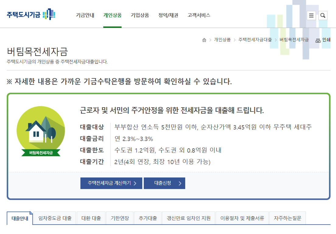 2.청년버팀목전세대출 한도와 금리