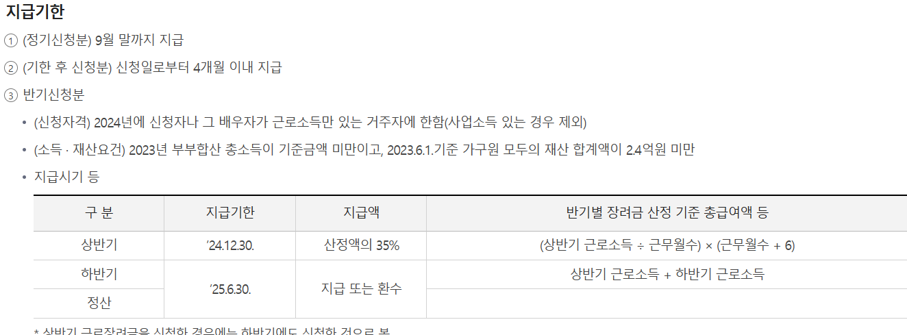 2025년 반기 근로장려금은 9월말까지 지급될 예정입니다.